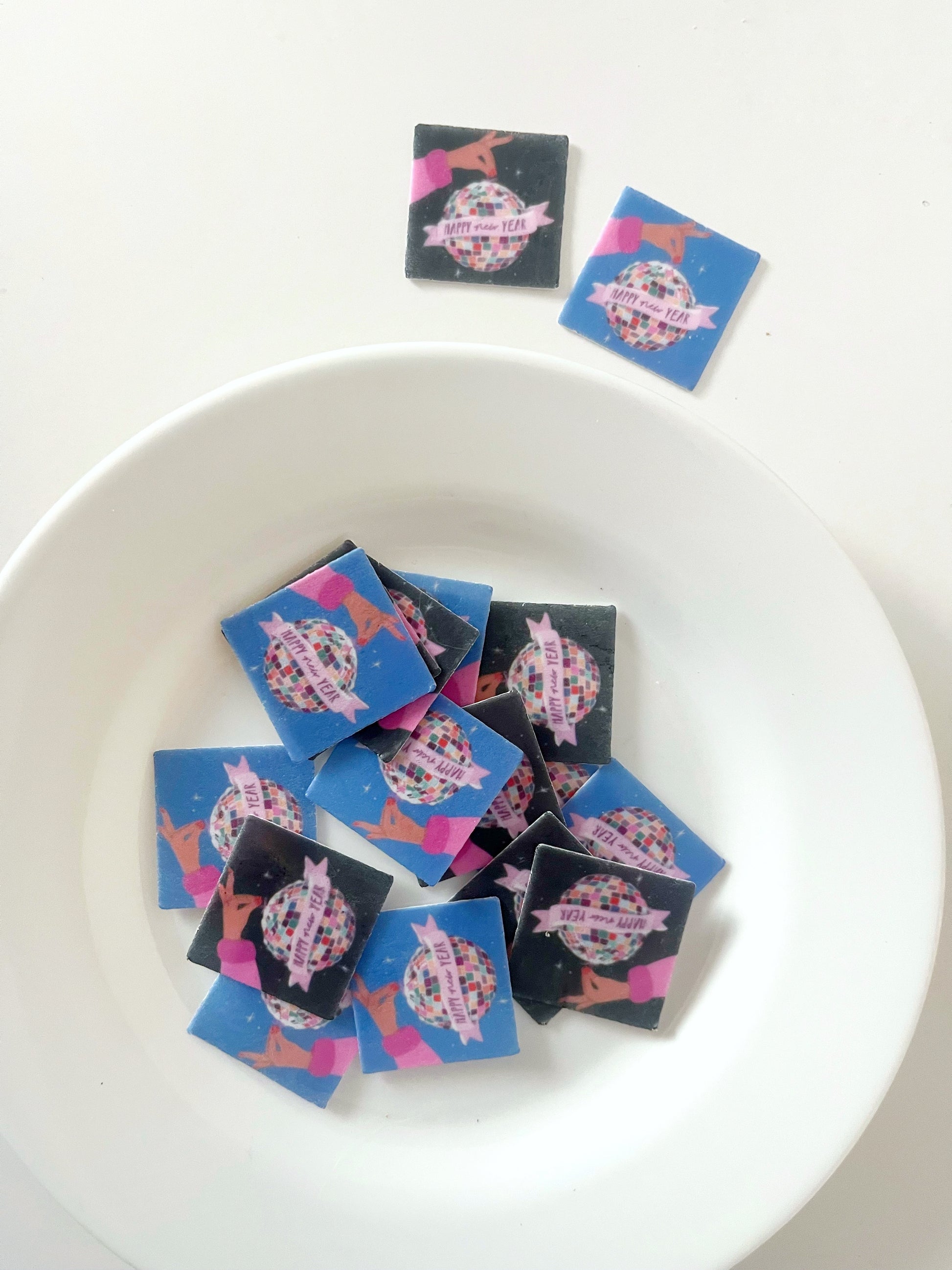 Impresas en papel de arroz con tinta comestible.