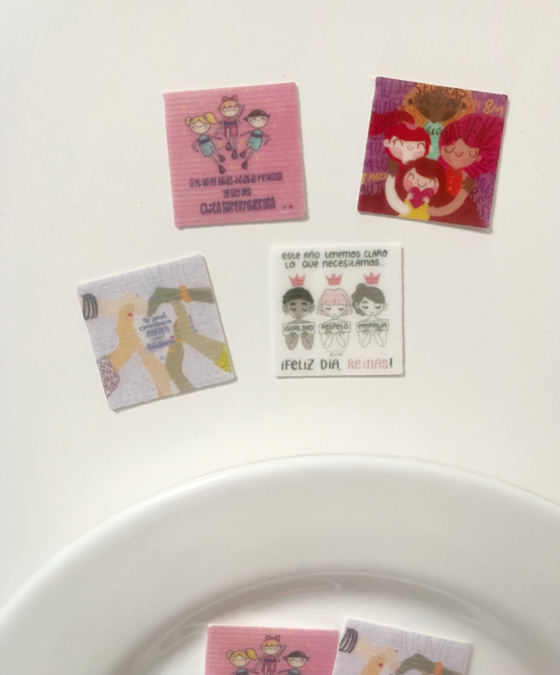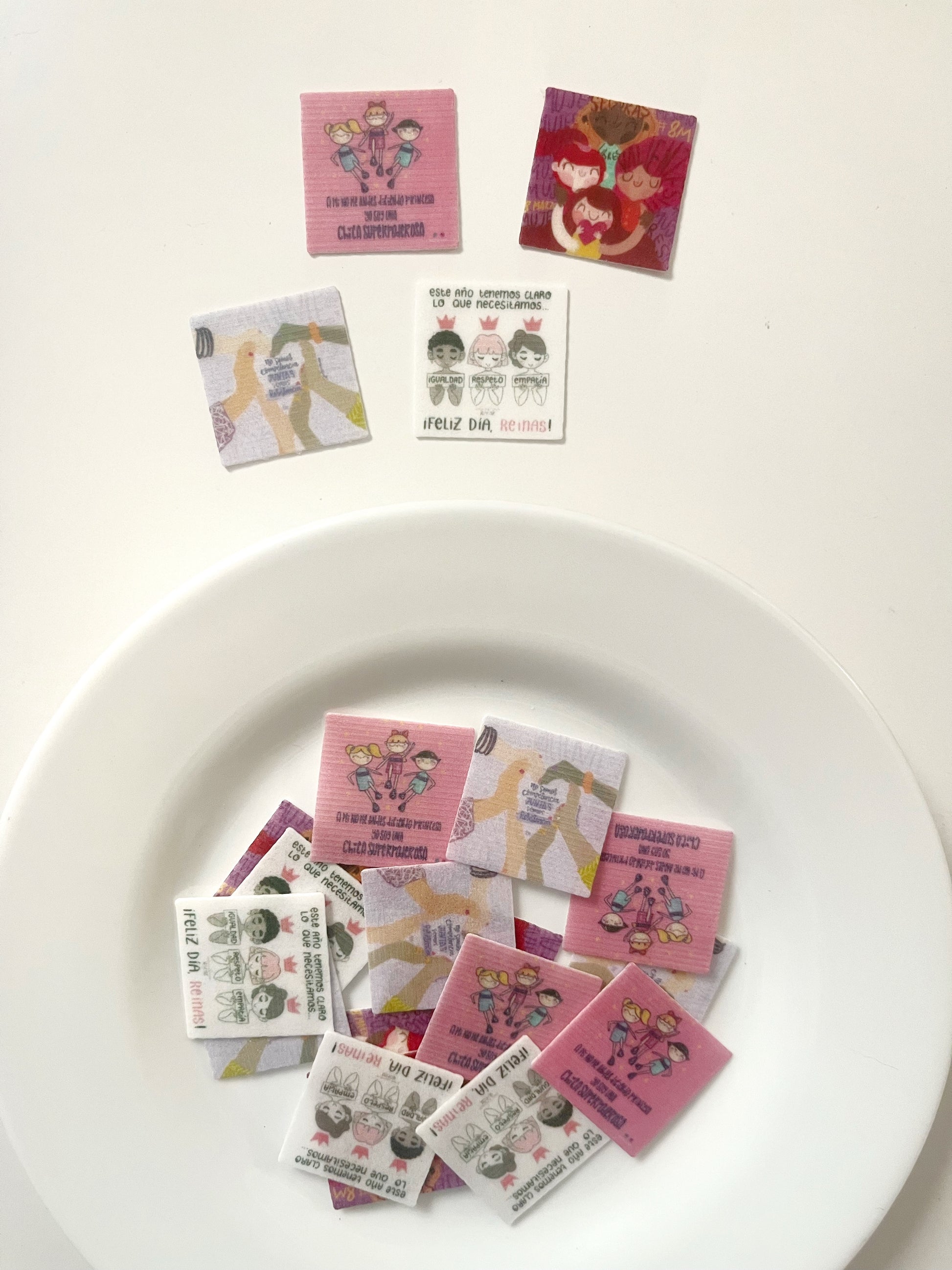 Impresas en papel de arroz con tinta comestible.