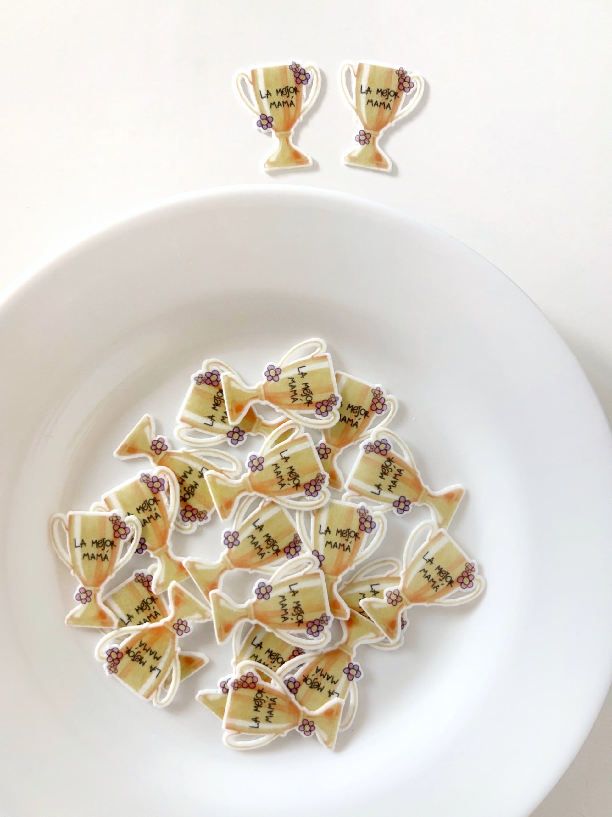 Impresas en papel de arroz con tinta comestible.